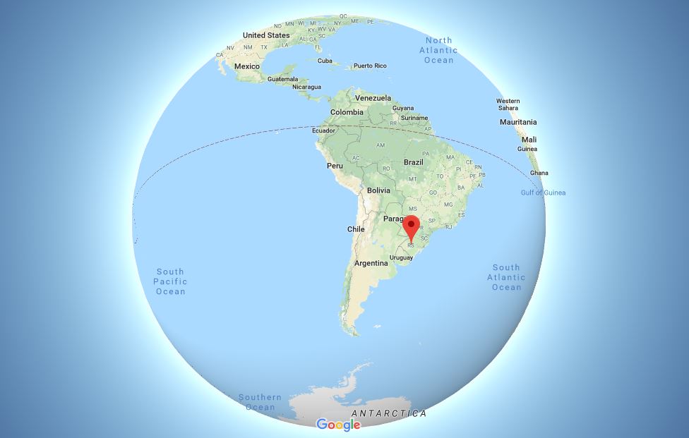 Santa Maria AquamarineA Santa Maria Aquamarine Blue color world map showing Santa Maria Brazil where the original mine is located and the Blue Oceans that Aquamarine Gems reflect.