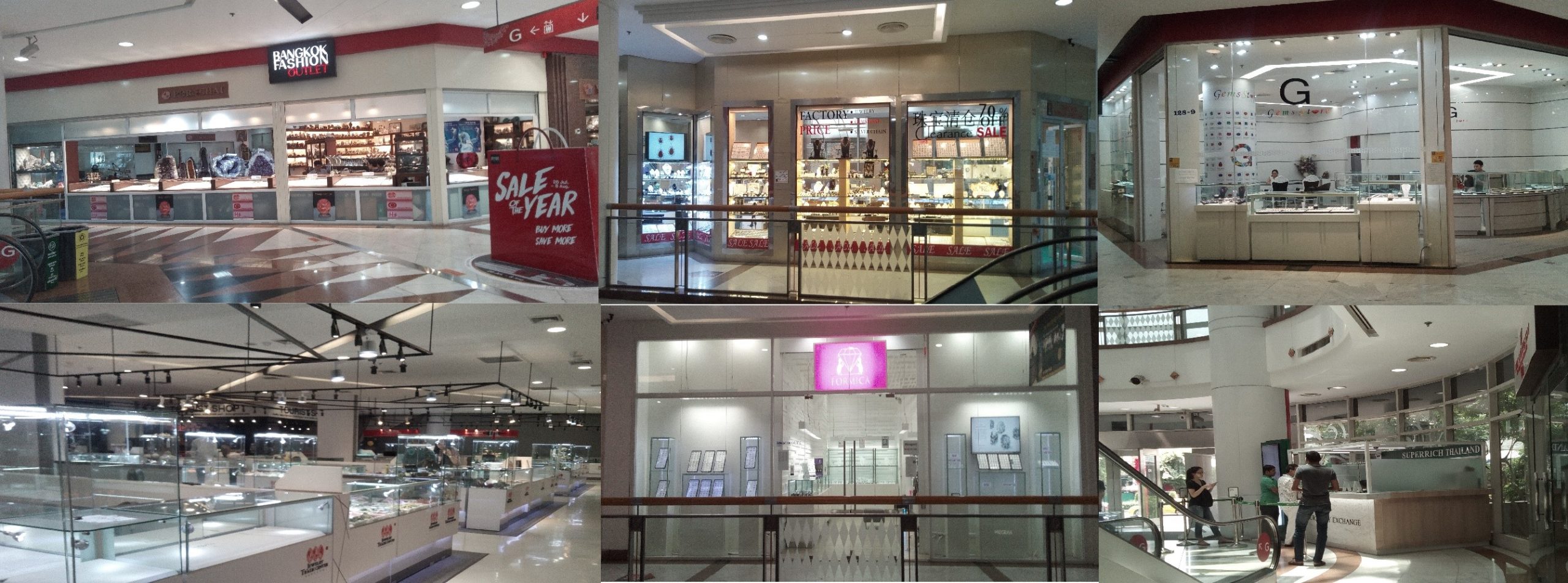 In the sky scraper Jewelry trade center building on Silom road, there are many, many jewelers and both retail and wholesale gemstone Silom suppliers and raw gemstone material suppliers on the many floors from the basement level to the higher floors. The Bangkok Fashion Outlet Mall and much more is within the complex. From the ;ower level where you’ll see a discount home supply area and shops all around plus more gemstones and jewelry shops along the way Included on every floor of the mall are name brand stores and local clothing and shoe stores and stores like Office Depot and more for all of your needs. Parking is available near the side entrance to the Fashion Outlet Mall just behind the JTC Tower and the Holiday Inn Silom Hotel.